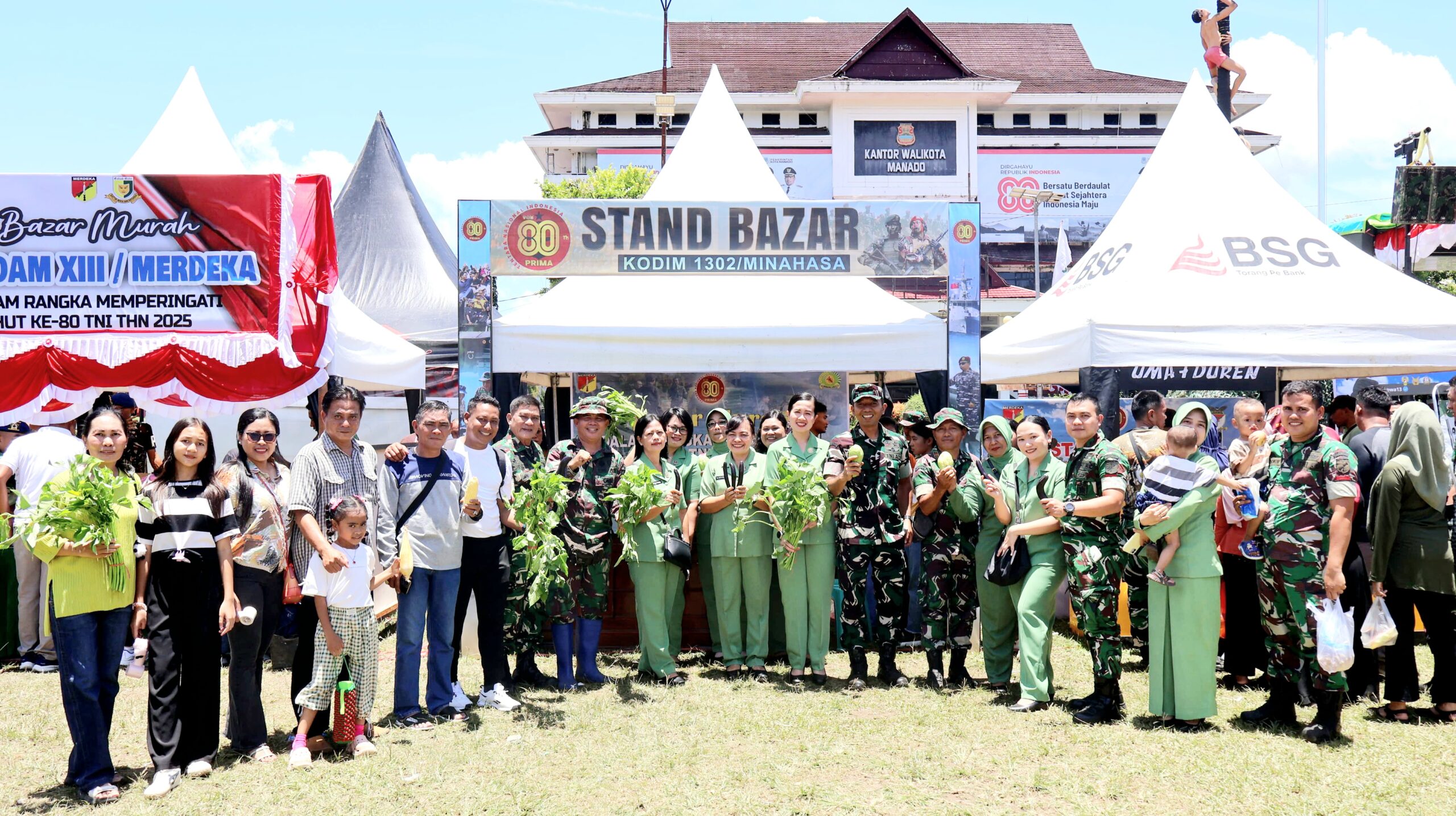 INTANANEWS.ID – Kemeriahan perayaan HUT ke-80 TNI terasa begitu hangat di Kota Manado. Semangat kebersamaan terpancar kuat dari ramainya Bazar Murah yang digelar Kodim 1302/Minahasa di Lapangan Sparta Tikala, Minggu (21/9/2025).
