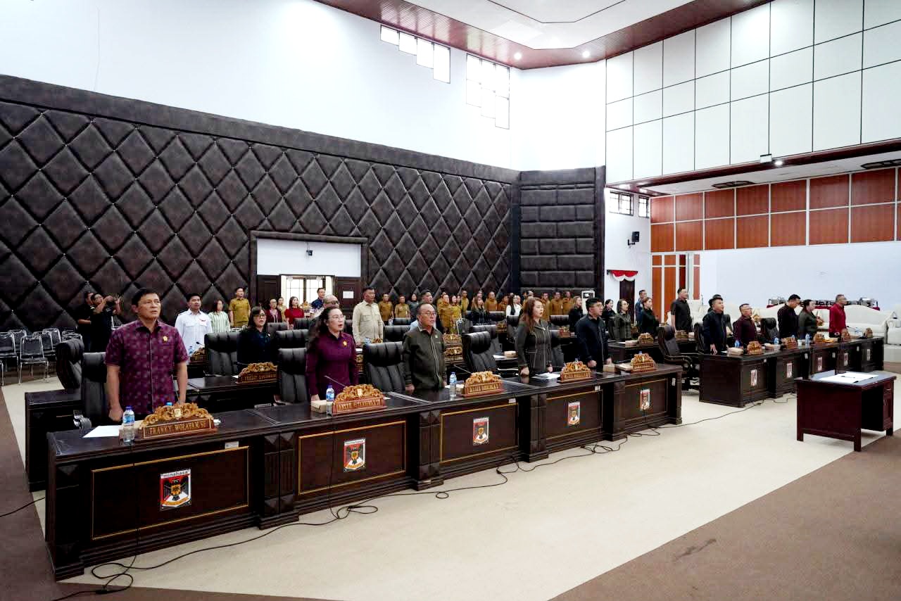 Rapat dipimpin oleh Ketua DPRD Minahasa Robby Longkutoy, didampingi Wakil Ketua Putri Pontororing dan Adrie Kamasi.