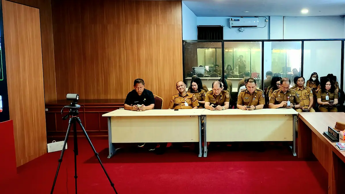 Dalam kegiatan di Ruang Command Center tersebut, Bupati didampingi oleh sejumlah kepala perangkat daerah, antara lain Kepala BPKAD, Kadis Kominfo, Kadis Perdagangan, serta jajaran teknis lainnya. (nes)