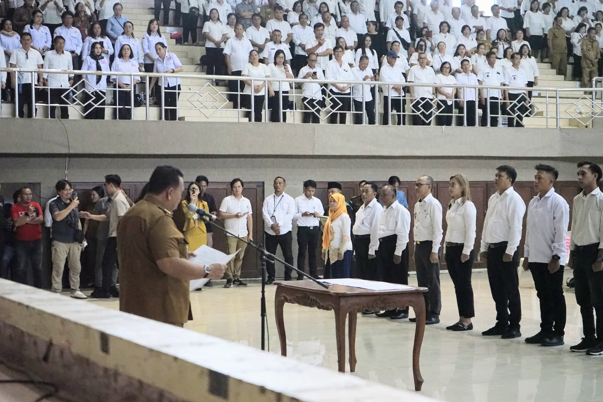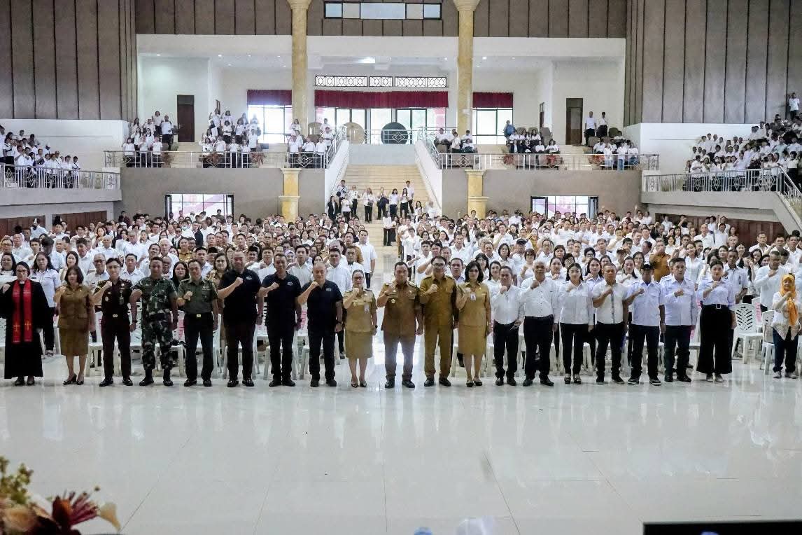 Pengurus dan pengawas KDKMP se-Kabupaten Minahasa secara resmi dilantik, Selasa (18/11/2025) di Gedung Wale Ne Tou, Tondano.
