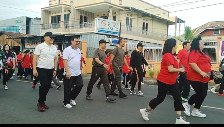 Jalan Sehat diikuti Kasdim 1302/Minahasa, Mayor Inf Daeng Pasaka, bersama ratusan Aparatur Sipil Negara (ASN), Tenaga Harian Lepas (THL) Pemerintah Kabupaten Minahasa, dan pelajar SMP ini merupakan rangkaian kegiatan peringatan Hari Jadi Minahasa ke-597 tahun 2025.