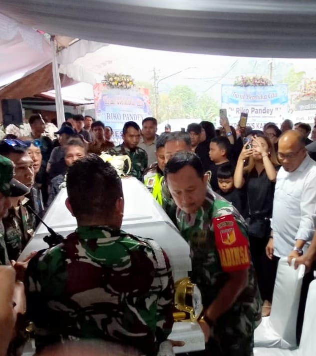 INTANANEWS.ID – Komandan Komando Distrik Militer (Kodim) 1302/Minahasa Letkol Inf Bonaventura Ageng Fajar Santoso bersama Ketua Persit Kartika Chandra Kirana (KCK) Cabang XIV Kodim 1302/Minahasa, Ny. drg. Basaria Manurung, Sp.BM., menghadiri ibadah pemakaman Riko Desmon Pandey, kakak kandung dari Deril Pandey, Asisten Pribadi (Aspri) Presiden Republik Indonesia.