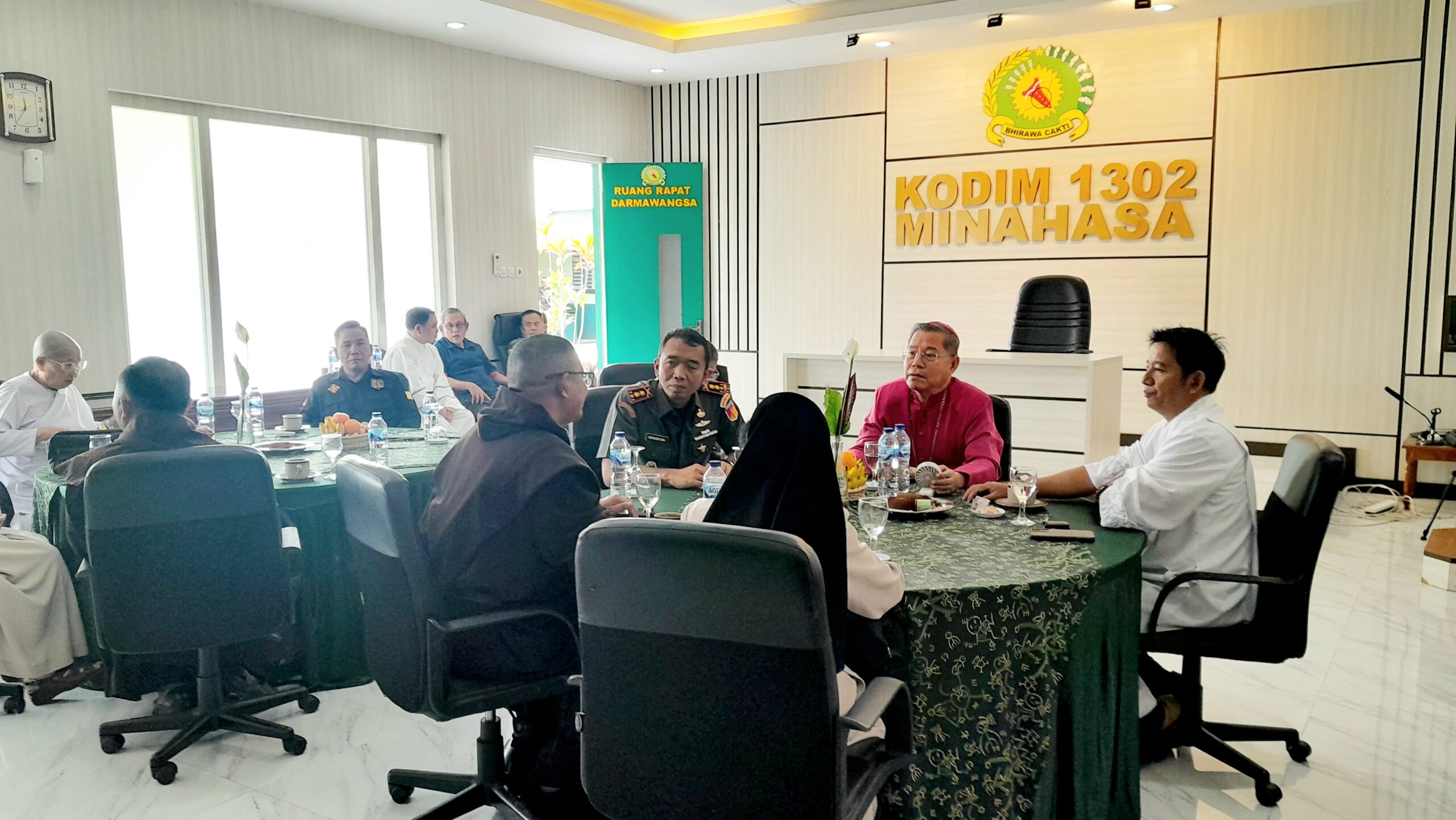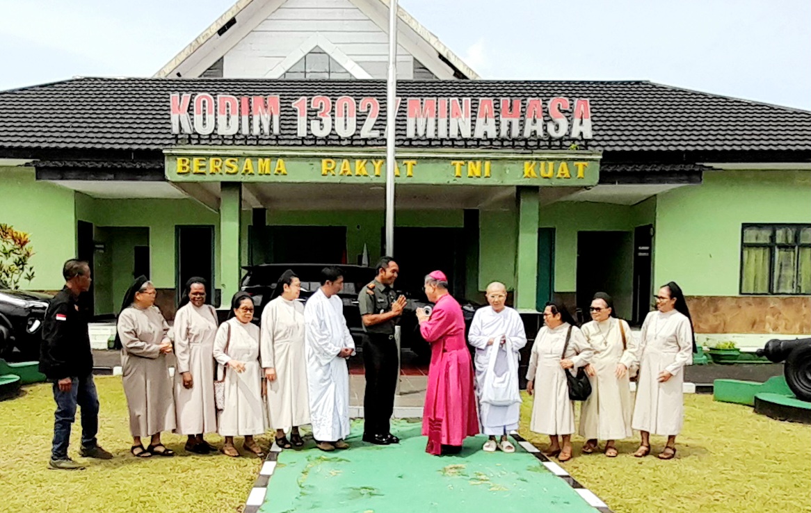 INTANANEWS – Dandim 1302/Minahasa Letkol Inf Bonaventura Ageng F. S. menerima kunjungan silaturahmi Uskup Keuskupan Manado, Monsinyur Benedictus Estephanus Rolly Untu MSC di Markas Kodim 1302/Minahasa, Kelurahan Sasaran, Kecamatan Tondano Utara, Senin (2/3/2026).