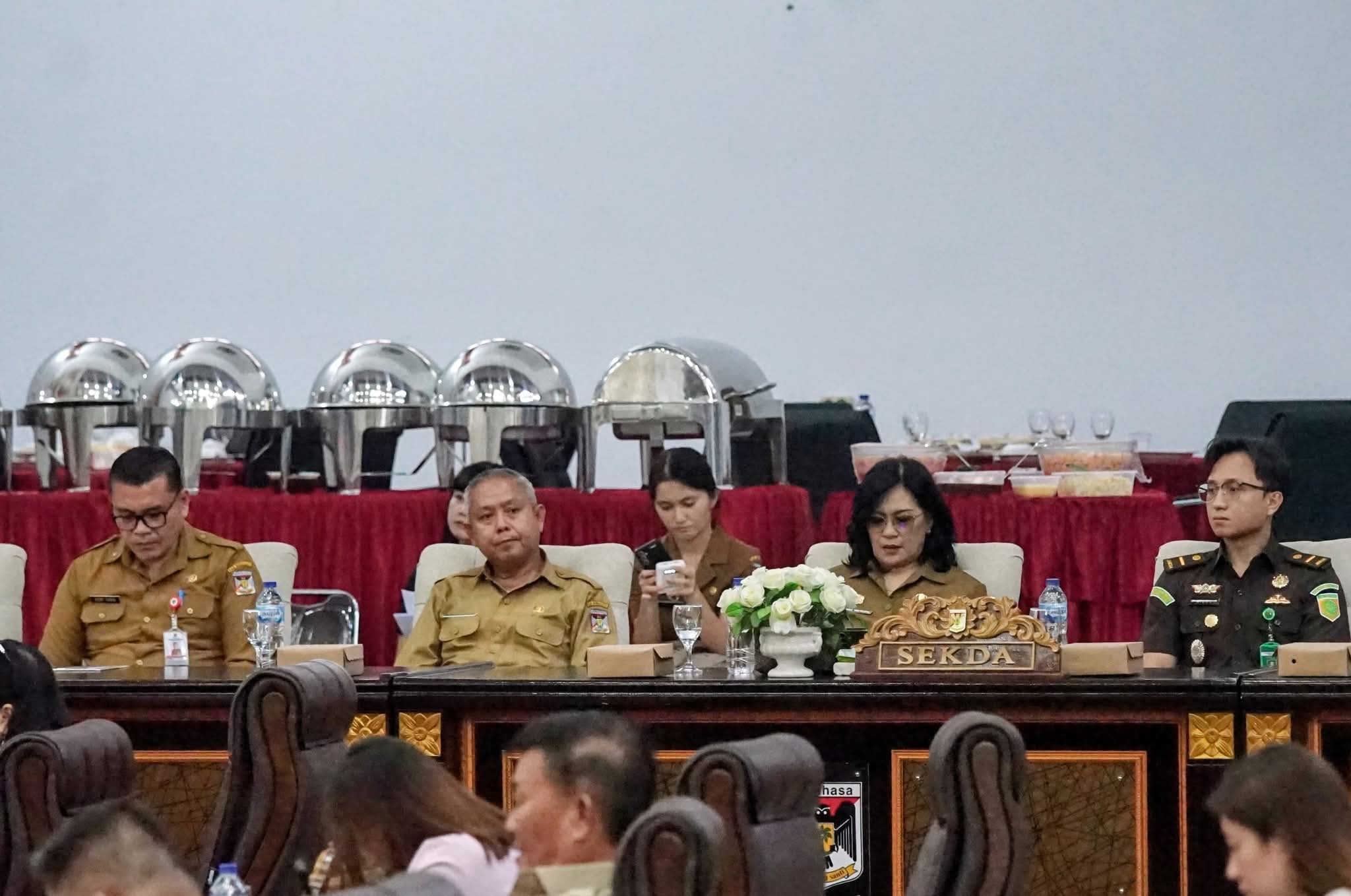 Rapat paripurna di Ruang Sidang DPRD, Senin, 17 November 2025, dipimpin oleh Ketua DPRD Minahasa, Robby Longkutoy, didampingi Wakil Ketua Putri Pontororing dan Adrie Kamasi.