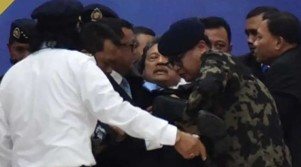 Menteri Trenggono kemudian dibawa ke luar ruangan acara. Bahkan, sempat dibawa ke ambulans untuk mendapatkan pertolongan medis lebih lanjut.