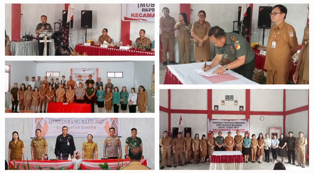 INTANANEWS – Personel Babinsa dan Danramil jajaran Kodim 1302/Minahasa menghadiri Musyawarah Perencanaan Pembangunan (Musrenbang) RKPD Tahun 2027 di Kecamatan Tondano Barat, Tompaso, dan Sonder secara serentak, Senin (23/2/2026).