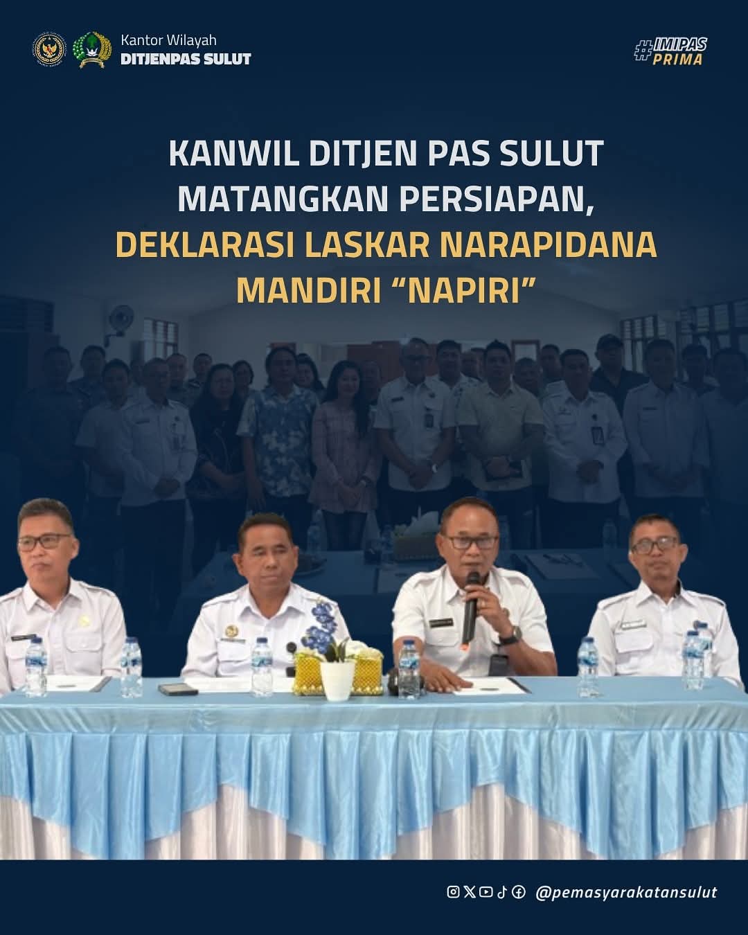 INTANANEWS.ID — Kantor Wilayah Direktorat Jenderal Pemasyarakatan (Kanwil Ditjen PAS) Sulawesi Utara (Sulut) mematangkan persiapan pembentukan Laskar Narapidana Mandiri (NAPIRI), sebuah inisiatif untuk membentuk wadah pembinaan dan pemberdayaan klien pemasyarakatan.