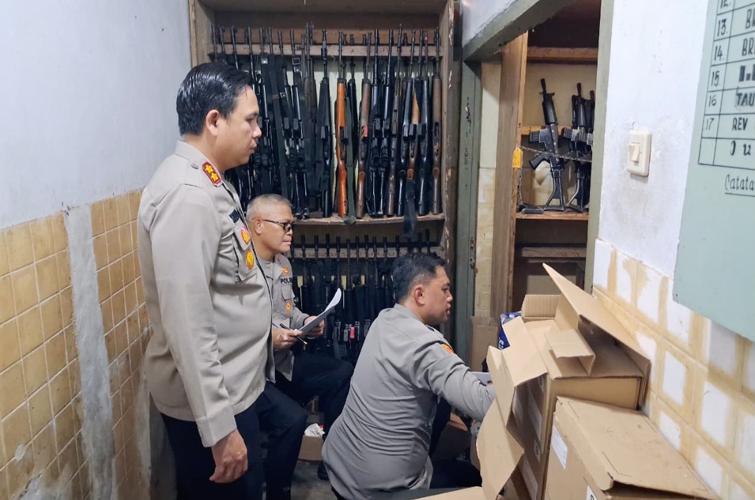 Kegiatan yang dilaksanakan bersama Wakapolres Kompol Djonny Rumate ini bertujuan memastikan pengelolaan dan penyimpanan senjata api dinas sesuai dengan prosedur operasional kepolisian.
