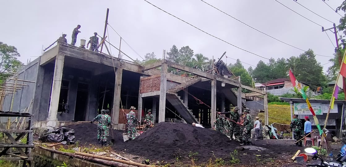 Sebanyak 60 personel Kodim dikerahkan untuk membantu sekitar 40 jamaah dalam mempercepat proses konstruksi rumah ibadah tersebut.