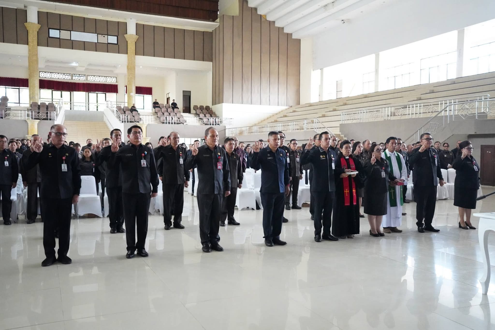 Turut hadir dalam acara tersebut Wakil Bupati Vanda Sarundajang, Sekretaris Daerah Lynda D. Watania, serta jajaran pimpinan perangkat daerah lainnya. Prosesi ini dirangkaikan dengan penandatanganan pakta integritas dan perjanjian kerja.