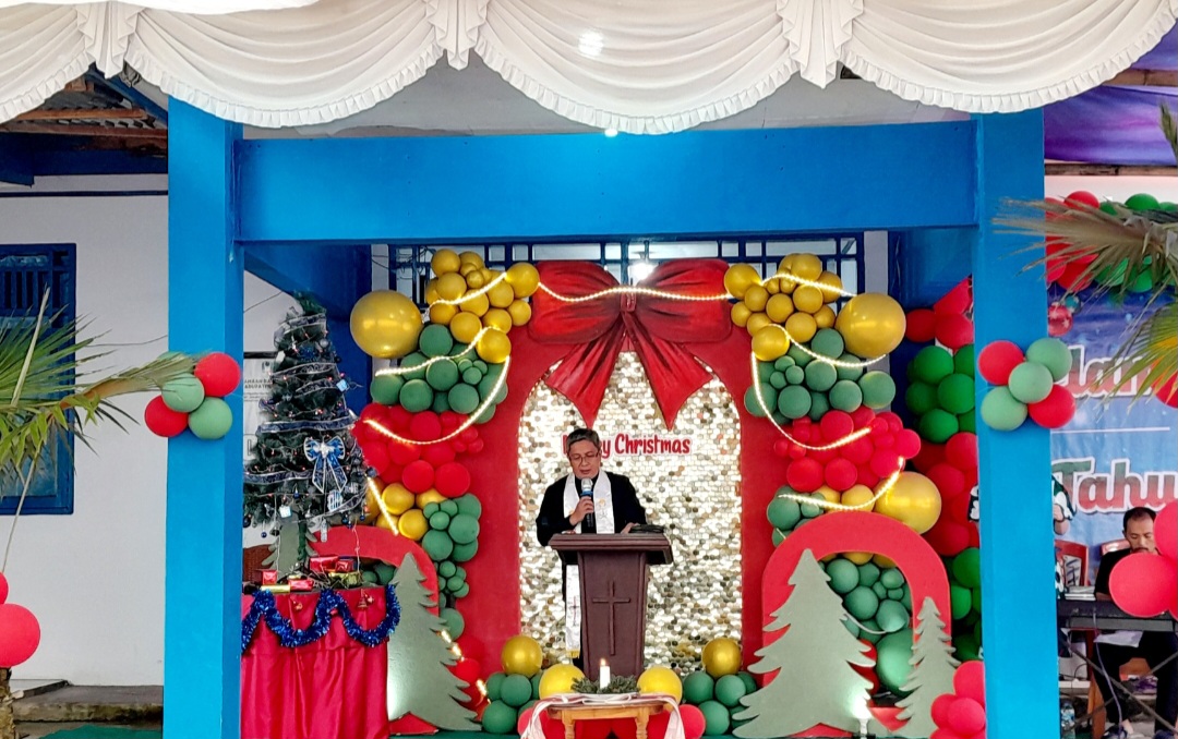 Ibadah yang berlangsung khidmat tersebut dipimpin oleh Pendeta Audrey Sumenge. Dalam khotbahnya yang mendasari pada Kitab Matius 2:1-12 tentang perjalanan Orang-orang Majus, Pendeta Audrey mengingatkan pentingnya menjaga hati dari sifat ketamakan.