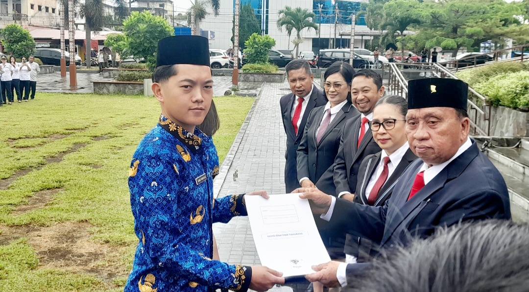 Pada kesempatan yang sama, Bupati Robby Dondokambey juga menyerahkan Surat Keputusan (SK) Calon Pegawai Negeri Sipil (CPNS) kepada para penerima.