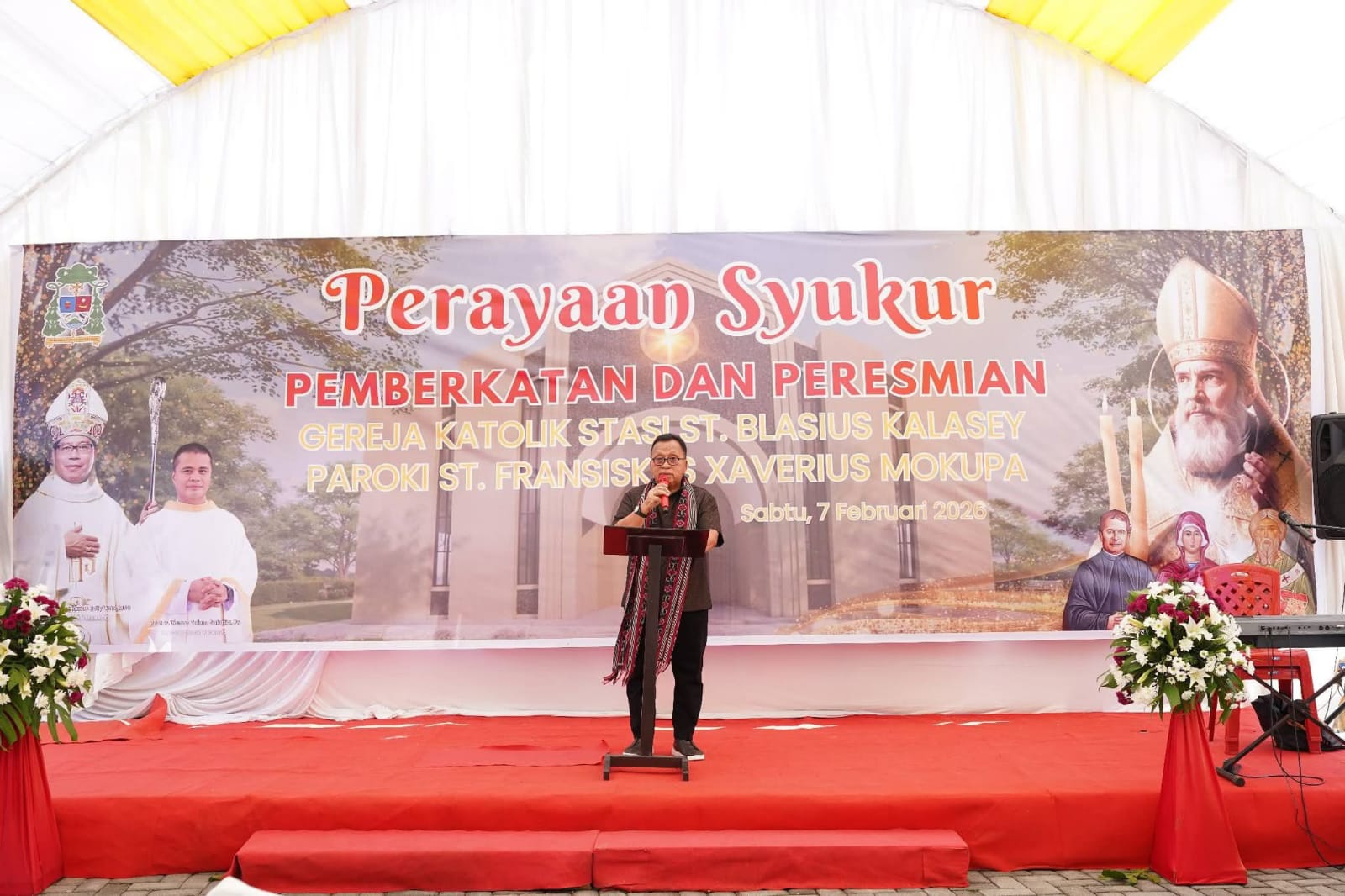 INTANA.NEWS – Bupati Minahasa Robby Dondokambey meresmikan Gedung Gereja Katolik St. Blasius di Desa Kalasey, Kecamatan Mandolang, Sabtu (7/2/2026).