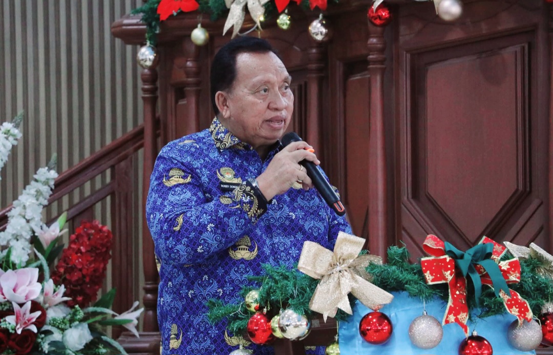 Bupati Minahasa Robby Dondokambey S.Si., M.A.P., meminta warga menyambut Natal Yesus Kristus dengan kesederhanaan, memperkuat ketahanan pangan keluarga secara mandiri, serta meningkatkan kewaspadaan terhadap bencana alam.