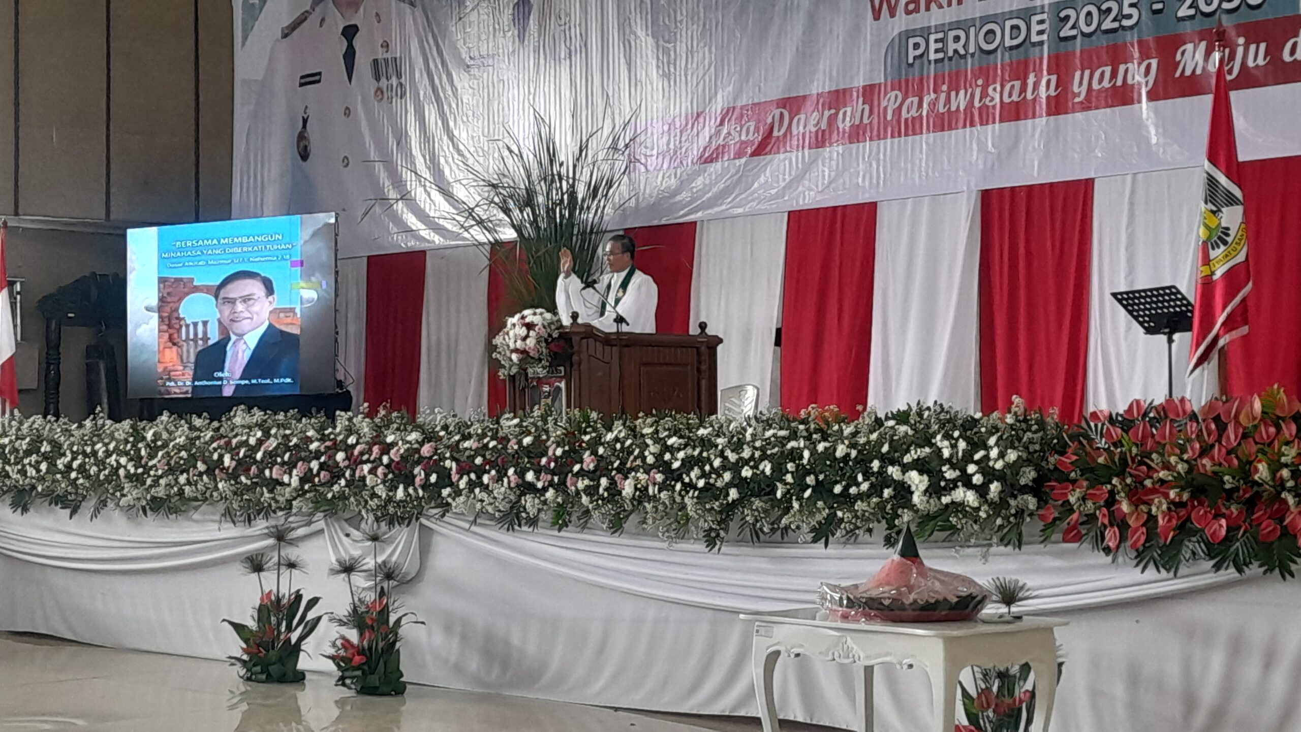 Dalam sambutannya, Bupati Dr. Robby Dondokambey S.Si M.A.P menegaskan bahwa setahun pertama ini adalah tanggung jawab moral untuk membawa perubahan di Minahasa.